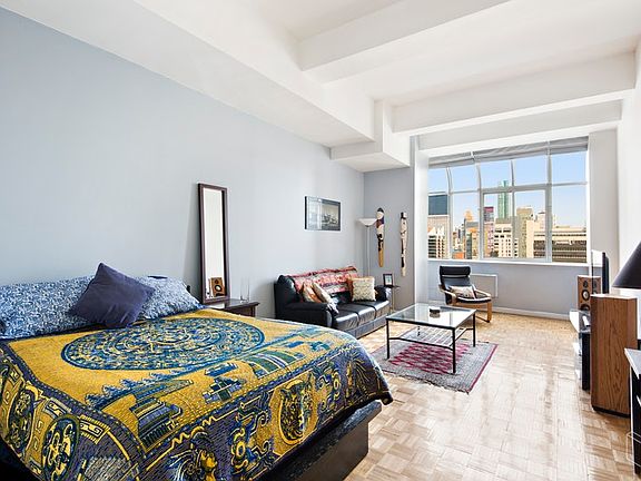 Welcome to Turtle Bay Towers located in the heart of midtown Manhattan. Enjoy this open floor plan with unobstructed city and skyline views from your private North facing solarium windows which are equipped with electric blackout blinds for your convenience. Apartment 21F is bright, cheerful and has tremendous light throughout the day. Enjoy the spacious feel with the 11+ foot ceilings, 3 closets, hardwood floors and a new a/c unit operated from your wall control panel. The kitchen is renovated with good cabinet space and new stainless steel appliances. The building amenities include 24 hour doorman, live-in super, laundry on floors 3 through 18 (inclusive), a roof deck, bike room and storage lockers for rent. This relaxed condop has unlimited subletting upon ownership and no formal board approval. Turtle Bay Towers is pet friendly, allows Pied-a-Terres and is investor friendly. There is a parking garage adjacent to the lobby. Turtle Bay is Cable TV ready with high speed internet options. Close to the United Nations, public transportation, great restaurants and one block from the Dag Hammarskjold Plaza Greenmarket.