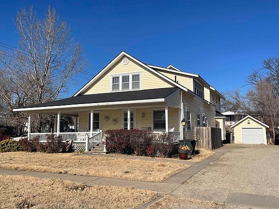 **Exceptional 5~Bedroom Home on a Spacious Corner Lot!!** Discover your perfect haven at **305 E. 5th St.**!! This stunning **1.5~story residence** boasts **5 bedrooms** and **4 baths** within an impressive **4,341 sq ft** of living space, all situated on a generous corner lot. As you approach, you`ll be captivated by the inviting **wrap~around porch**—a perfect spot to relax and enjoy the scenery. The home offers a **double attached garage** and a bonus **single detached garage** for all your storage needs. Step inside to a **large great room** featuring a cozy **gas log fireplace**, ideal for gatherings and relaxation. The heart of this home is undoubtedly the **baker and entertainer`s dream kitchen**!! With a **wrap~around bar** accommodating up to 8, plus ample dining space, this kitchen is designed for both culinary creativity and socializing. Enjoy a **large walk~in pantry**, open shelving, glass~front cabinetry, and an abundance of base cabinets. With **2 sinks, dishwasher, and 2 stoves**, you’ll have everything you need to host unforgettable dinner parties!! Convenience reigns with a **main floor laundry**, a bedroom, and a full bathroom, ensuring ease of living. Venture downstairs to the **fully finished basement**, complete with a bathroom, mechanical room, living room, and a craft room, perfect for hobbies or additional entertaining. Head upstairs to find **3 spacious bedrooms** and a full bath, alongside a **massive master suite** that features **2 huge walk~in closets** and a luxurious master bath suite. Indulge in the soaking tub, enjoy the walk~in shower, and take advantage of the **2 vanities** and private toilet for a spa~like retreat. This exceptional property is ideally located near downtown, offering easy access to the library, schools, parks, and the post office. Don’t miss out on the opportunity to call this magnificent house your home!! Call Kendra Trueblood, About You Realty, 785.483.9347 Today for your tour along with fresh bread & cookies baked in this amazing kitchen from the seller!!!