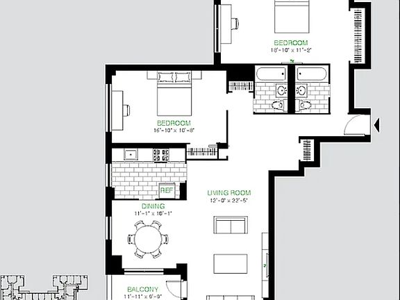 Extra Large two bedroom with dining alcove (convertible 3 or 4) with private entrance and ample closet space.