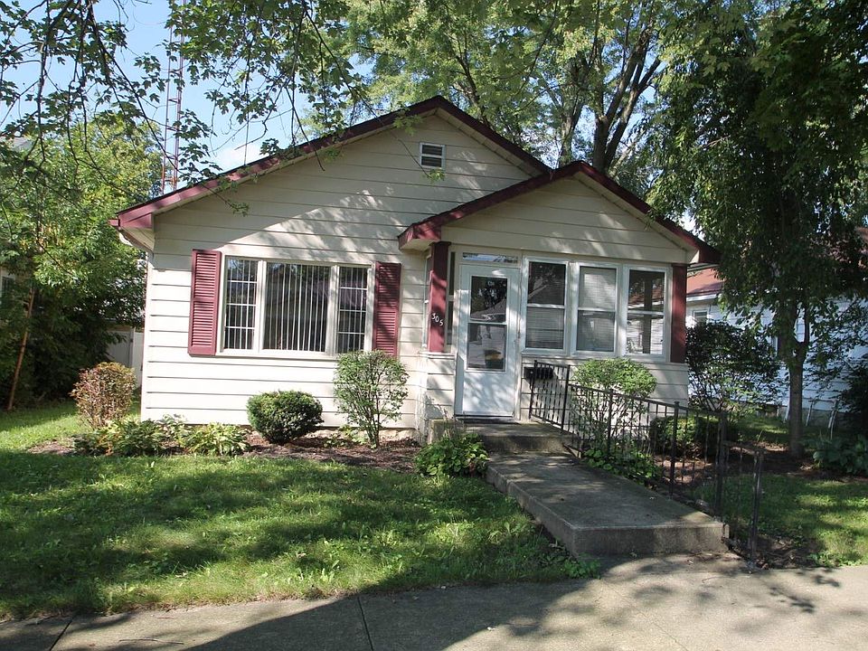 Adorable 2 bedroom home that has been updated and has TONS of storage! You will be impressed with all the storage in the closets, walk-in pantry, and laundry room. The enclosed front porch is a great additional space. The house will grab you with the charm of the woodwork, refinished hardwood floors & newer vinyl flooring. Kitchen is great for the chef in the family with the plentiful oak cabinets, counter space and dinette area. The living room and dining room have the hardwood floors, charming woodwork and plenty of daylight for your enjoyment. The detached 2 car garage has a newer roof. Nice wood deck out back for cook-outs. ALL kitchen appliances and washer & dryer remain. This very well cared for home is move-in ready!