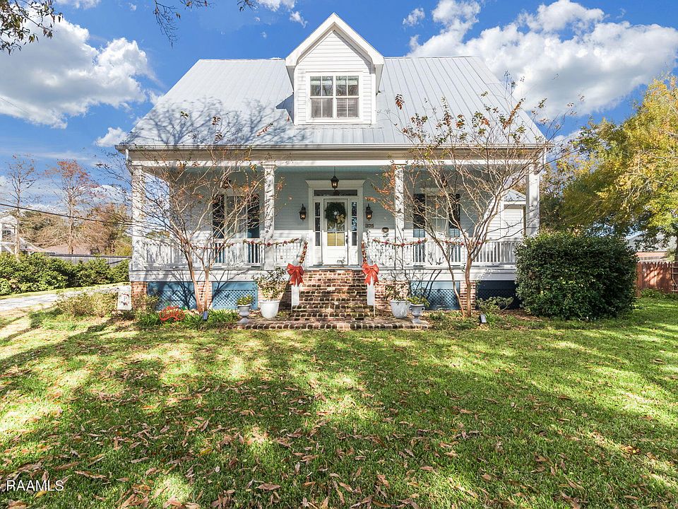 Welcome to this charming historic Acadian-style home nestled on 1.75 acres in the heart of Lafayette, LA. With its timeless character and beautiful craftsmanship, this home offers a perfect blend of vintage appeal and modern living. Home features 4 bedrooms, 3 bathrooms, an office space, a metal roof, galvanized gutters, a beautiful cypress staircase, long leaf pine flooring, beaded board ceilings, solid walls, and detailed trim just to name a few. Two of the bedrooms are located downstairs with 2 bedrooms and a full bath located upstairs. The park-like setting in the backyard creates a serene retreat with plenty of room for outdoor activities, gardening, or relaxation. Enjoy the tranquility and privacy of the expansive lot, ideal for entertaining or unwinding in nature.Additionally, this property features a spacious 432sf room above the carport, which presents a fantastic opportunity to create a versatile bonus space--whether as an office, studio, or guest suite. With its picturesque location and unique features, this home offers an exceptional opportunity to own a beautiful acadian style home on acreage in a prime location with convenience to shoppings, schools, and hospitals.