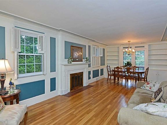 Mature wooded setting while the house sits above for vistas from the deck Enjoy refinished hardwood floors throughout. Stainless appliances in an eat in kitchen with abundant cabinetry, pantry closet, and built in desk. Separate dining room, and spacious living room with built ins and half bath complete the first floor. Four bedrooms, two hall baths, and ample closet space make up the second floor. Lower level has additional space for an exercise area and storage. Large two car garage and deck make this a great opportunity in a neighborhood walkable to schools, swim club, and community center. Be ready for the start of school and the Fall foliage from the deck. Welcome Home!