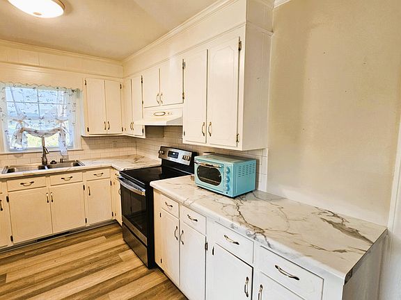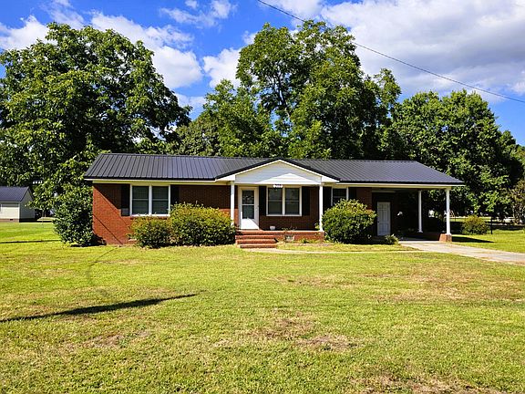 This charming 2-bedroom, 1-bath brick ranch offers cozy living with a small town feel. Enjoy the covered front porch, perfect for relaxing on warm days. The attached carport provides covered parking, and the large backyard offers plenty of outdoor space. Inside, you'll find a spacious living room with a cozy gas log fireplace. The kitchen features an eat in dining room and you have a laundry room with cabinets for added convenience. The home has been well-maintained with new windows and a metal roof installed in 2020. This is a must see. Schedule your tour today.