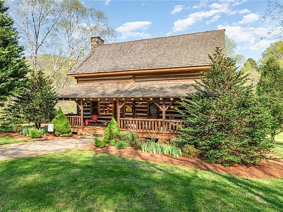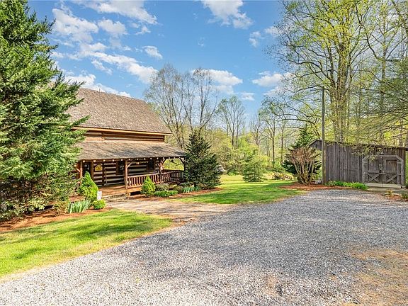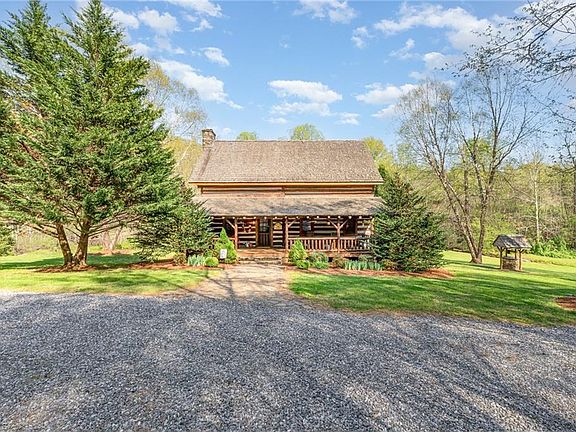 Don't miss this BEAUTIFUL log cabin on 4 acres with a creek, great lawn, small barn, the property is fenced and has a gated entry for privacy. It comes fully furnished and move-in ready with pine floors, granite countertops, walk-in pantry, and spacious primary suite featuring soaking tub and tiled shower. You will never run out of hot water with the tankless water heater. The exterior logs have been recently cleaned, re-chinked, stained, and sealed. New gravel driveway and professional landscaping. Enjoy peaceful views from the covered front porch, entertain by the firepit, or relax on the covered back porch overlooking the property. Private setting ideal for full-time living, weekend retreat, or potential short-term rental. Convenient to Blue Ridge Parkway, Ashe County, Boone, and the Wilkesboros.