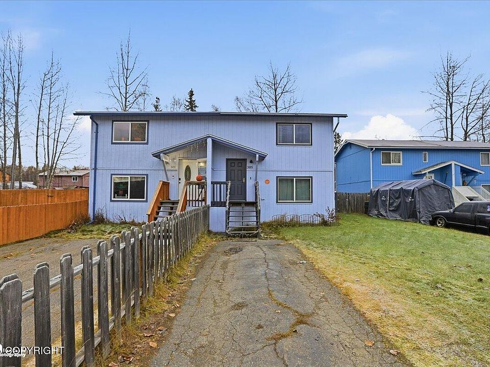 Welcome to this charming two-bedroom, one-and-a-half-bath home tucked away on a quiet street in Northeast Anchorage. This cozy residence offers a comfortable layout with an open living and dining area that flows naturally into the kitchen, perfect for everyday living or entertaining. Upstairs, you'll find two spacious bedrooms and a full bath, providing ample room for rest and relaxation. The half bath on the main level adds convenience for guests. Outside, enjoy a private, fenced backyard with plenty of space for gatherings, pets, or gardening. A dedicated parking area and storage shed provide additional functionality and ease. Located just minutes from Tikahtnu Commons, JBER access, and a variety of shops, schools, and restaurants, this home combines comfort and convenience in a peaceful neighborhood setting.
