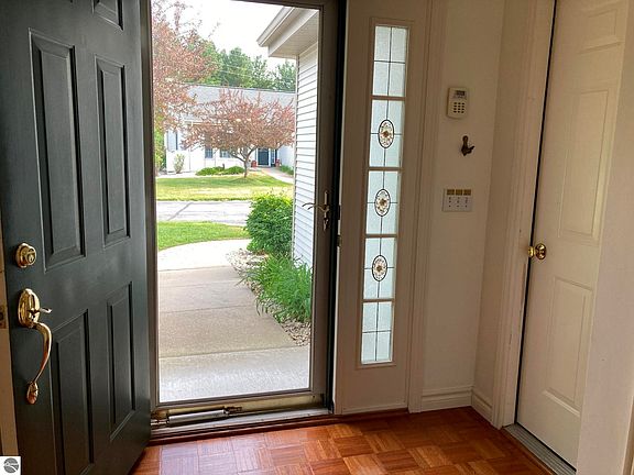 Welcome to a delightful living experience in Elk Rapids! Discover this exceptional Meadow View Commons condo situated in the heart of the development, offering captivating views of the enchanting courtyard. This splendid 2 bedroom, 2 bath condo eagerly awaits its new owner. Prepare to be amazed by the spacious and radiant open concept design, featuring a generously sized great room adorned with a cozy gas fireplace. Indulge in the serenity of the four seasons room, where you can bask in the picturesque view and expand your living space, creating the perfect oasis for unwinding with a captivating book or engaging in lively games with your loved ones or maybe even satisfy that green thumb. The sizable eat-in kitchen is a haven for culinary enthusiasts, providing ample storage space for all your culinary needs. Additionally, the attached 2-car garage boasts shelving, ensuring that you have plenty of room to organize your belongings. Retreat to the master bedroom, offering a private bath and spacious walk-in closet. With the convenience of main floor laundry and utility room, your daily tasks become a breeze. Immerse yourself in the good life Elk Rapids has to offer. Nestled across from the golf course and in close proximity to breathtaking beaches, delightful restaurants, and the charming village, every day presents a new adventure. Embrace the joy of easy living in Elk Rapids and make this highly sought-after Meadow View Commons condo your own slice of paradise.