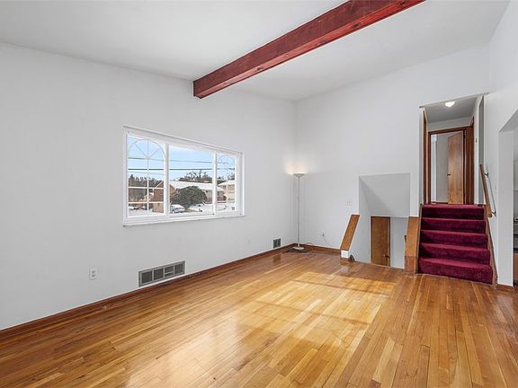 Step into this charming multi-level brick home where timeless appeal meets modern efficiency. With 3 bedrooms & 1.5 bath, this inviting home offers the perfect blend of comfort and convenience. Inside, you'll find beautiful hardwood floors throughout, adding warmth and character. Plenty of windows bathe the home in natural sunlight, creating a bright and airy atmosphere. Partially fin basement provides flex space for a cozy den or home office. One-stall garage offers add'l storage. The screened-in back porch, an ideal spot to unwind or entertain. The large, flat backyard is perfect for gardening, outdoor activities, or simply enjoying the fresh air. A wide, flat cement driveway ensures ample parking. Adding to the home's appeal, solar panels provide energy efficiency and cost savings, making this an eco-friendly choice. Conveniently located near Route 8, shopping, dining & rec activities, this home offers the perfect balance of peaceful living with easy access.