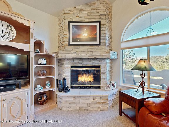 Beautiful home with three bedrooms and four baths. Fully furnished with southwest decor. Large open floor plan with level entry with large kitchen area with all new appliances, laundry room off kitchen with great storage. Living area with a corner fire place with out standing views of Sierra Blanca off the deck. Two bedrooms with shared bath, Primary bedroom with corner fireplace and doors to the covered deck. Large walk-in closets with large bath. Great game room down stairs, large enough for pool table and ping pong table, with wet bar and beautiful furnishing and art work with door to lower deck Two car garage on this level with lots of storage and mud room or golf storage. Also has a dumb waiter to get your groceries to the upstairs kitchen.