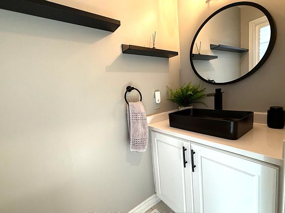 Large windowsModern kitchenAmple cabinetryPot lightsConvenient breakfast barUpdated laminate floorsGenerous primary bedroom