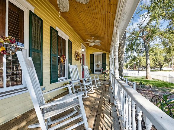 Step into this timeless home, showcasing classic architectural charm. The welcoming front porch boasts late Victorian character, complete with ornate wood balusters and a charming frieze. Inside, a beautifully preserved stained glass entry door opens into a grand foyer featuring original woodwork, rich wainscoting, and hardwood floors. Though tastefully updated in recent years, the home maintains its authentic charm throughout. The kitchen is a delightful blend of old and new, offering granite countertops, elegant cabinetry, and original hardwood flooring. Adding incredible value, the property includes three garage apartments—each with a private entrance and access to a shared laundry—making it ideal for guests, rental income, or a home business. Set on a desirable corner lot on Hardeman and Main Street directly across from the city park, this iconic Sealy residence is not only a home but a piece of local history directly in the heart of Sealy.