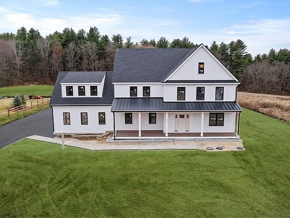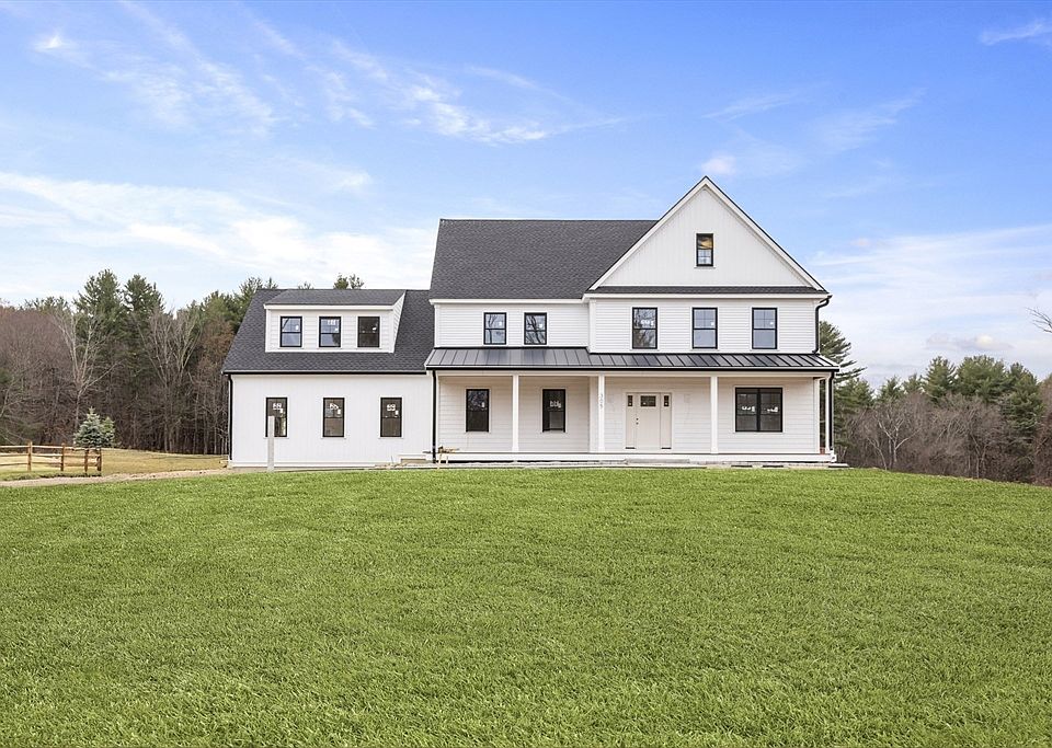 New construction modern farmhouse in Littleton, offering nearly 5,000 sq. ft. of luxurious living space on a picturesque country road. This 5-bedroom, 5-bath home features a sun-filled four-season room, a flexible first-floor study/guest bedroom, and a spacious open-concept kitchen, dining, and family room with a cozy fireplace. The fully finished walkout basement with full bath provides ideal space for in-law, recreation or extended living. Enjoy a large backyard perfect for outdoor activities. Located minutes from the commuter rail to Boston, "The Point" shopping center, and popular area amenities including walking trails, bike paths, restaurants, Kimball Farms, and Nashoba Ski Area, with easy access to Rt. 495. Estimated completion January/February 2026. The grass and driveway in photos are virtual.