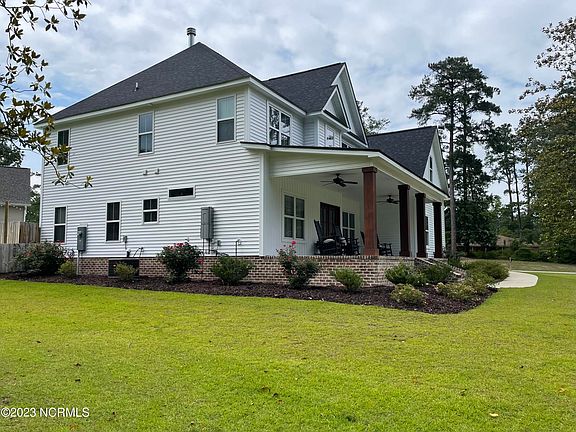 Custom built home in desirable Trent Woods featuring 4 bedrooms, rec room and conditioned storage space. Welcome home says it all with the curb appeal of this home with spacious front porch with plenty of space to relax in a rocker while the ceiling fans offer a breeze. Enter the double doors to a foyer that leads to a formal dining room or craftsman staircase to upstairs. As you continue through the foyer, you step in the family room with tons of natural light from the double height ceilings that is overlooked by a cat walk from upstairs. The fireplace provides ambiance with its natural gas logs as well as warmth. Entertaining is a must with the kitchen that is open to the family room with its oversized island. The kitchen has lots of cabinets with granite countertops,