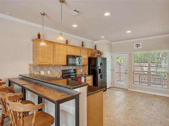 Gated complex, on the Texas A&M bus stop and minutes from Texas A&M! Come see this excellent 4 bedroom 4.5 bathroom River Oaks Townhome Condo. This condo features a large living room with an open kitchen, eating bar and granite countertops, large bedrooms each with private bathrooms and a 1/2 bath on the 1st floor for guests. Enjoy the fenced yard backing up to a greenbelt, designated parking, Wolf Pen Creek walking trails nearby and convenient location! Don't miss the pool, hot tubs and clubhouse offering an excellent workout facility, conference room, kitchen and large living room. Refrigerator, washer and dryer will remain.