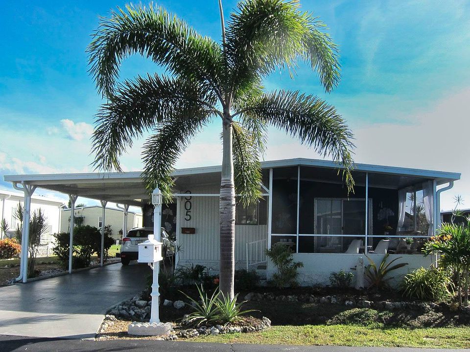 Sun-Drenched 2-Bedroom, 2-Bath Gem in Naples Estates Step into your slice of paradise with this beautifully updated manufactured home in the heart of Naples Estates. Bathed in natural light and brimming with modern upgrades, this 2-bedroom, 2-bath retreat blends comfort, style, and convenience. Key Upgrades: Brand-new roof, central A/C, appliances, ceiling fans, bathroom lighting, window treatments, and fresh interior paint. Elegant grey luxury vinyl plank flooring throughout. Bright & Airy Living: Two oversized sliding glass doors fill the spacious living area with sunshine. Seamless indoor-outdoor flow to a screened lanai-perfect for morning coffee or evening cocktails. Stylish Kitchen: Crisp white cabinetry, new appliances, Porcelain marble countertops with generous counter space, and ample storage. Private Suites: Primary bedroom with walk-in closet and updated en-suite bath with shower enclosure.Second bedroom ideal for guests or a home office, featuring its own walk-in closet and full bath with tub.Outdoor Enjoyment: Relax year-round on your screened porch. Strongly reinforced carport adds peace of mind and extra space, enough to fit three (3) vehicles. Resort-Style Amenities: Clubhouse, swimming pool, fitness center, and vibrant community events.Prime Naples Location: Minutes from downtown, shopping, dining, entertainment, and world-class Gulf beaches. Don't miss this rare opportunity to own a sun-filled sanctuary in one of Naples' most desirable communities. Schedule your showing today and start living the Florida dream.