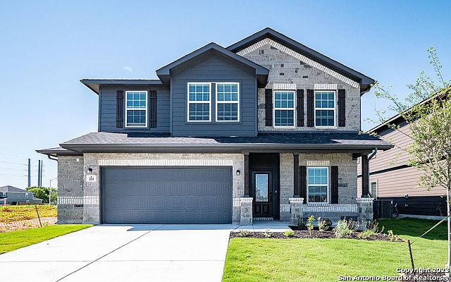 The popular Rio Grande boasts four bedrooms, two-and a half bathrooms & an upstairs gameroom! Upgrades and features in this home include: Covered patio with HALF car garage, Exterior stone, Pre-plumb for water softener, a Super shower in the master bath, Kitchen island option with granite, Wrought iron horizontal rails, Full gutters, Garage door opener, 42" Upper kitchen & bath cabinets, herringbone kitchen backsplash, undermount stainless steel single bowl sink, Vinyl plank flooring throughout, Elongated commode at master, Additional coach light, Study doors, Window coverings, and Surround sound package with camera prewire