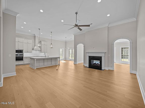 The Manchester plan features an open layout, three bedrooms, three full baths, a Sunroom, and a bonus room. Finishes include LED recessed lighting, soffit lighting, engineered hardwoods, coffered ceilings, custom built-in bench seat, wainscoting, crown molding, white 42'' stacked with 18'' kitchen wall cabinets with quartz countertops, tile backsplash, drop-in range, Wall oven/microwave and stainless steel appliances. The owner's suite offers a separate free-standing tub and a tile walk-in shower. Touch Screen Panel (Prepped for Wireless Security), a Z-Wave Lock, a T6 Z-Wave Thermostat, a Skybell Video Doorbell, and a 12-month free automation service through Alarm.com!