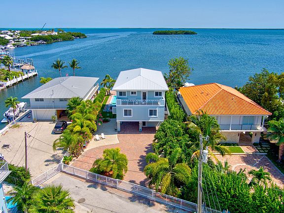 This immaculate bayfront home, built in 2018, is a true waterfront dream. Boasting 4 spacious bedrooms and 2.5 luxurious bathrooms, this property seamlessly blends comfort and convenience. With an elevator providing easy access to all levels, all-impact windows and doors, and outdoor hurricane wind-rated enclosure screens, this home is as durable as it is beautiful. The backyard is a coastal masterpiece, opening up to breathtaking views of Sunset Cove and Pelican Key. Stunning skies and tranquil waters set the stage for your ultimate Keys lifestyle. For boating enthusiasts, this property is a haven! It features a private dock with water, electric, and security cameras, a 16,000-pound boat lift, an additional smaller lift, a davit, and a convenient fish cleaning station. With no mangroves obstructing your view, your access to adventure is immediate and effortless. After a day on the water, unwind in the multi-lighted saltwater pool with an integrated jacuzzi or watch the illuminated marine life beneath the surface as the sun sets. The vibrant coastal lighting adds a magical touch to your evenings. Privacy and security are top-notch with a fully fenced property and a LiftMaster electric gate offering offsite control and monitoring capabilities for peace of mind. The low-maintenance tropical landscaping completes this serene retreat. Move-in ready, this home is waiting for you to embrace the Keys lifestyle in luxury from day one. Don't miss this opportunity to live the dream on the water! (MIA about a hour away)