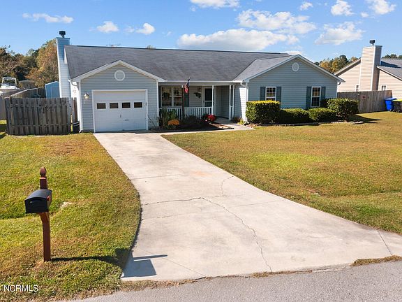 Exceptional and well maintained 4 bedroom ranch style in Ivy Ridge. This home is within 5 minutes from the back gate of Camp Lejeune. This beautiful home features an open floor plan with barn style doors leading into the den with fireplace, laundry room, generous closet space, pantry and fenced backyard with deck and patio for all your entertaining. Schedule your showing today because this home will not last!