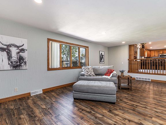 Beautiful 3BR/2BA home with 2 car garage on a quiet cul-de-sac in Farley! The large windows provide lots of light with an open 1st floor layout providing an eat-in kitchen, dining room and huge family room. There is a large deck off the kitchen with access to a large back yard with patio, basketball court and playground equipment. The home is bright with wider oak trim and solid doors with new floors in the family room and 2 bedrooms. The lower level provides a large family room with tall ceilings, a cubby for the kids, an office, storage and access to the back yard. Beautiful home in a great little town!