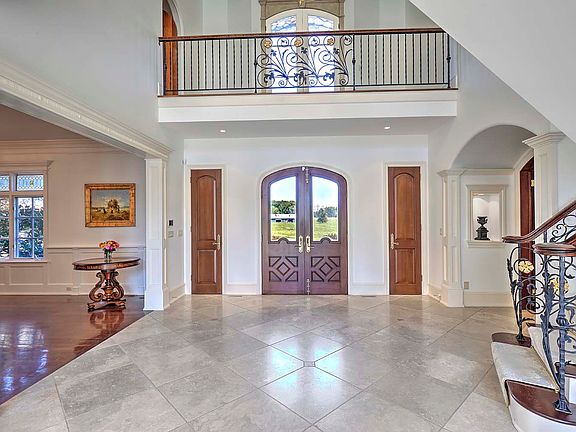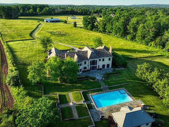 In the bucolic setting of Bedminster, New Jersey, stands an elegant Custom Manor home inspired by Tuscany's distinctive country villas. Set on 31 + acres the property offers beautifully landscaped grounds, a pond, fields of swaying hay, mature tress and shrubbery, 4 paddocks, terraced lawns, impressive stone walls, a silo, 3 barns, a cottage, pool house, heated pool and spa. Approaching the residence, one is awed by a regal exterior, with a blend of stucco and stone, a beautiful slate roof, brick chimneys, and copper gutters. Once inside the home, one is presented with extensive custom architectural moldings and millwork. The thoughtfully created and modern floor plan features solid wood doors, high ceilings, light-filled rooms, elegant Kolbe windows, heated limestone and tile floors and hardwood. The hub of the home is the recently renovated kitchen which flows right into the family room, with wood-burning fireplace, wet bar, built-ins, and plenty of light. The kitchen is a joyful space allowing for views of the reflecting pool, cabana, bluestone terraces, flowers and trees. Off the kitchen and family room is a large walk-in panty, a first-floor bedroom with full bath, an exquisite dining room, fabulous formal library with gas fireplace, sun-filled living room, laundry room and two powder rooms. Behind the secret door of the library you will discover the potting room and the wine cellar entrance. The second floor brings you 4 more spacious bedrooms. The primary is well appointed with two large dressings rooms, a sitting area, spa spa-like bathroom with steam shower, jacuzzi tub, two water closets, a gym area, and a screened-in porch with sunset views that are hard to beat. The 3 additional bedrooms are grand, en-suite, with large closets, bright, with tremendous views. The enormous, partially finished lower level has high ceilings, perfect for storage, play, and pickleball Outside the setting is completed by a Wisteria Arbor, expansive blue stone patios, walkways, flower and vegetable gardens, a gorgeous heated pool and spa and a cabana. The cabana has a full bath,, kitchen, washer and dryer. On the property is a legal rental, 3 bedroom, 2 bathroom, 2 full kitchen cottage. In addition there is an 11-stable barn, and barn office. Located an hour to NYC and 35 minutes to Newark Airport, Mayfair Farm is also in close proximity to world-class golf courses, and tennis and pickleball clubs. In addition are the nearby equestrian facilities, excellent public and private schools, shops and restaurants. This property has it all.