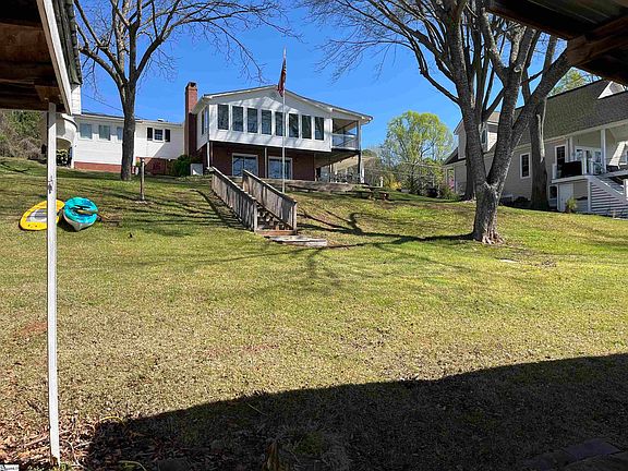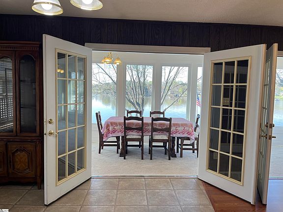 Lyman Lake waterfront house on deep water with sweeping views. Bring your investors or lake lovers with a vision. 3 bdrs, 3 baths - room for all your family and guests. This 1800 sq ft home has a large great room with fireplace overlooking the lake. The kitchen, breakfast area and great room are all open - makes the most of the views. There are 2 French doors for access to the sunroom. Large side screened porch and several paved patios. Attractive 2-car carport. Enjoy stunning views while embarking on a renovation adventure. Boasting an unfinished walkout basement, this home offers endless possibilities for customization. Dock area has covered boat slip, party deck with ladder for lake access and boathouse. Boathouses are grandfathered and can no longer be built on Lyman Lake. There is also a living room at front of house that can be an office or bunk room for even MORE sleeping areas. One full bath has wide doors and roll-in shower. 2 active pecan trees. Conveniently located just 25 miles from Downtown Greenville, this property grants easy access to Greenville or Spartanburg, shopping, GSP airport, and I85. Inventory is LOW on Lyman Lake. Make this waterfront home your own today. This home gets the sunsets. 90 hp outboard motors, 135 hp inboard motors allowed. Lyman Lake allows water skiing and towing tubes. No Jet skis. SOLD AS-IS.