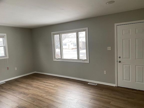 Charming 2 bedroom, 1 bath with extensive remodeling and updating near the Crown Point Square. Clean, neat, neutral and move-in ready. Remodeled kitchen features new cabinetry and stainless steel appliances. Remodeled bath with tub and tile shower. Sizable back yard features privacy fence, no neighbors behind, and private access to the bike trail. Deck is off back door and a second patio is behind garage. Front porch is newly rebuilt with composite decking.