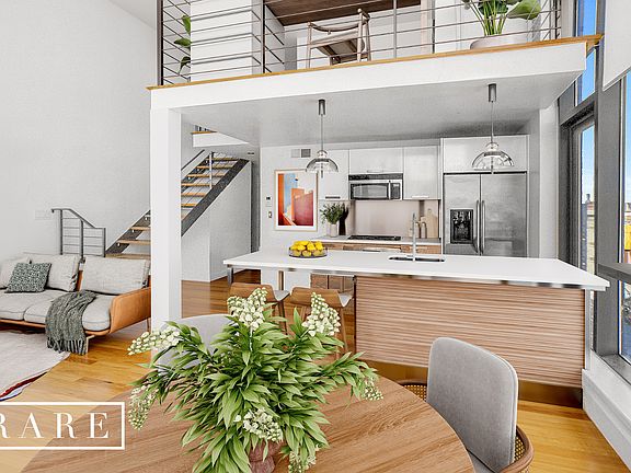 Many of the residences are duplexed with large mezzanine levels or open lower levels accessed by open-riser staircases and feature soaring ceilings.