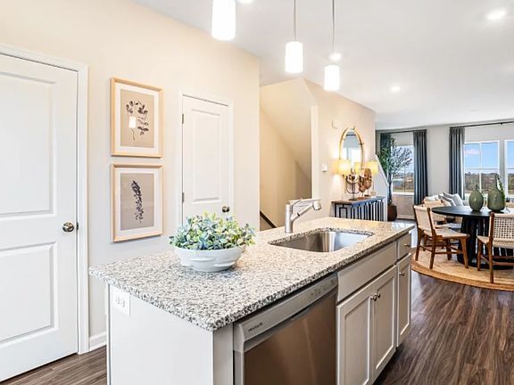 The Quincy is a 3-level townhome. The first floor features a rec room and half bath plus access to the rear load 1-car garage. The second level is host to an open concept floorplan that seamlessly connects a Great Room, dining area and modern rear kitchen with a 10x12 deck! The top floor boasts of a 2' extension for extra living space. Additionally, there are two bedrooms, including the luxurious owner's suite, which offers residents a restful bedroom, bathroom and generous walk-in closet. A full bathroom is easily accessible from the secondary bedroom. Washer and dryer included