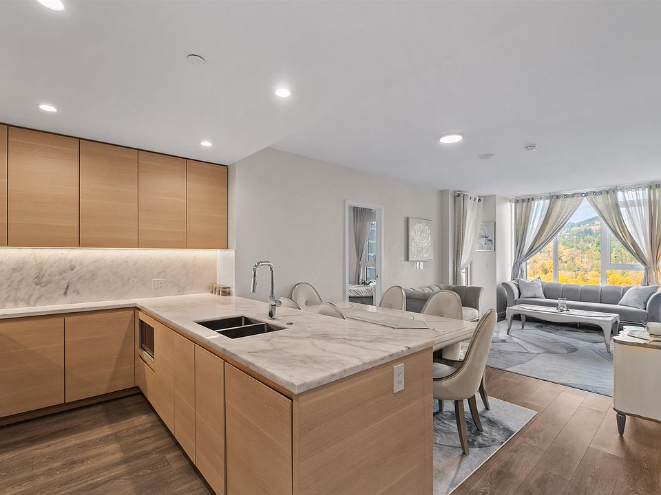 Burrard inlet viewsSun-filled homeGourmet kitchenMarble countertopsGas cooktopBuilt-in pantryPremium appliances