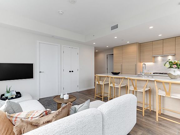 Stunning 2 Bed, 2 Bath Corner Home | Premier Concrete Building in Port Moody This 3-year-old residence combines modern elegance with comfort. Featuring 9-foot ceilings, air conditioning, and peaceful green space views. This home has been elevated with over $35,000 in custom upgrades including: a Ecobee smart thermostat, designer paint throughout, built-in shelving and drawers in all closets. Nu-heat floors in the ensuite, upgraded fixtures & hardware, and new carpeting in the principal bedroom. Chefs kitchen w/ fully integrated euro-appliances, gas range, stone island & countertops. EV parking stall. Situated steps from shops, transit, trails. Resort-style amenities include an outdoor pool, guest suites, fitness centre, and more. ***OPEN HOUSE*** SATURDAY NOV 1, 1-3 & SUNDAY NOV 2, 1-3