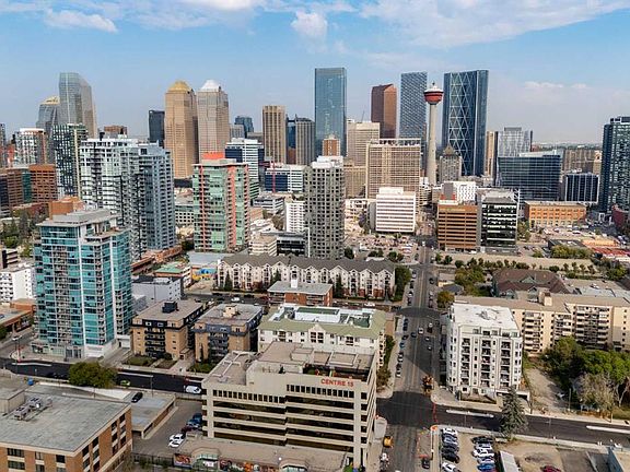 Mission offers a true walk everywhere lifestyle with 4th Street dining, boutique shops, river pathways, and the best of Calgary living just steps from downtown, parks, and endless amenities. Living at The District delivers it all. This well designed 2015 north facing 1 bedroom, 1 bathroom condo includes TITLED underground parking, assigned storage, and a spacious balcony. The open concept layout features large windows, 9 ft ceilings in the living, and a chic kitchen with sleek two tone cabinetry, quartz countertops, a peninsula with seating for three, gas cooktop, full stainless appliance package, and pendant lighting. Just off the kitchen is a thoughtfully designed built in office space. The living room is filled with natural light and city views, while the spacious bedroom connects to a walk through closet and spa inspired bathroom with a soaker tub and tiled shower. Added conveniences include in suite laundry with extra storage, and a balcony with gas hookup for summer evenings. Check out the virtual tour and book your showing today to see why this home stands out.