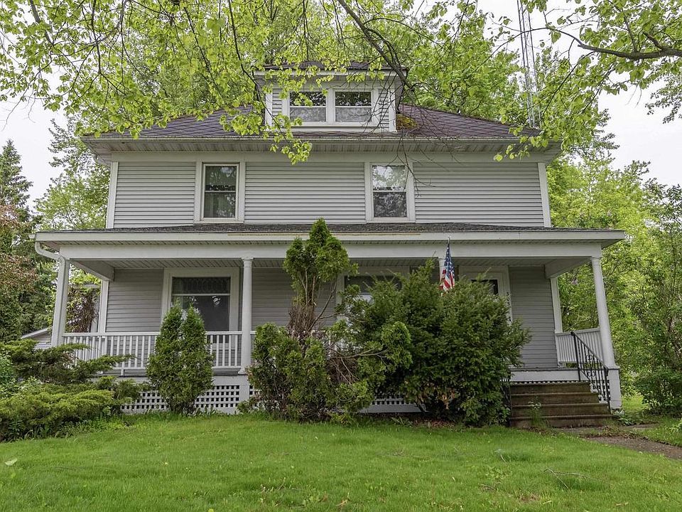 Beautiful wood work, spacious, convenient location of main thorough fairs. this home is full of charm with a great layout. A large family room addition provides a cozy gas fireplace and a great space for entertaining. Kitchen offers ample cabinetry for storage and easy prep space. The design of the home flows well to the formal dining area with a connection to the kitchen and front living room. Throughout the home you will notice the oversized windows streaming with natural light. The stunning banister leads you to the upper level which includes 4 nicely sized bedrooms and a full bath. The attic has potential to be finished off providing nice ceiling height and stunning craftmanship. Conveniently, there are 2 stairways from the main level to the upper level. Main level is completed with a full bath and a bonus room that could be a bedroom, office, or storage space. The garage is extra large. Additional features of this home are the slate shingles which provide minimal maintenance and have an enduring lifetime.,Nice sized yard, and a full basement under the addition that offering substantial storage or a workshop space. This home is a beauty inside and out. It has been well maintained to give you a new home to enjoy!