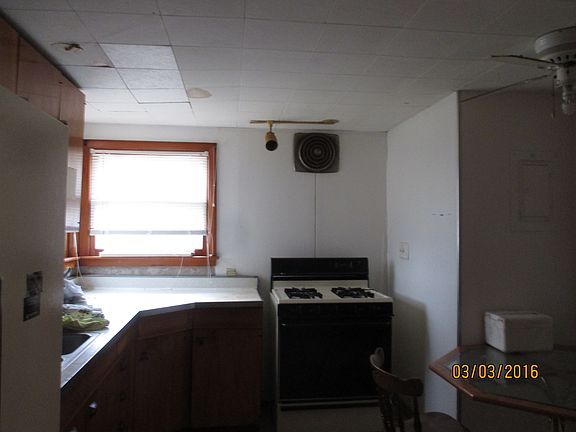 There is potential, with work, to become an income producing property. 2 bedroom home with large living & dining area. The detached 1 car garage has an apt. with 1 bedroom, bath, kitchen & living area. Condition of appliances along with furnace, water heater etc. unknown due to no heat, water or electric being on for several years.