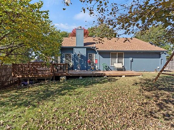 LOVELY, STRAIGHT RANCH, ONE LEVEL LIVING HOME, WITH A COVERED FRONT PORCH, JUST WAITING FOR YOU!!!! Freshly Painted. Nice Kitchen With a Bay Window, Wood Cabinets, and Corian Countertops. Cozy Fireplace in the Living Room. Spacious Primary Bedroom and Nice Sized Secondary Bedrooms. Laundry Room on the Main Floor. Finished Basement With a 4th Bedroom and about 100 sq ft of partially finished space. SO MUCH STORAGE SPACE! Elongated Storm Shelter. Extended Deck. Measurements & Square Footage are approximate.