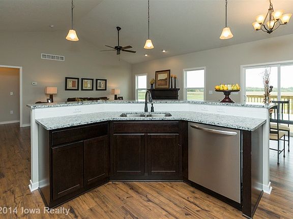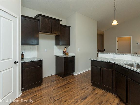 Modern finishes and welcoming curb appeal make this Grayhawk Homes Woodstock ranch a home you won't want to miss. Cool gray tones run through the home, highlighted with warm wood floors, kitchen features rich twilight cabinets, silver star granite, subway tile backsplash and nice corner pantry for extra storage. Vaulted living area and covered porch all great for entertaining. 3 bedrooms on main level with the large master bedroom split for extra privacy. Huge spa like master bath with separate soaking tub and tile shower. Main floor laundry and built in lockers as you enter from garage for extra storage. Finished Walk-out lower level with 9 foot ceilings, family room, 4th bedroom and bathroom. Excellent Waukee location near new Elementary School (Fall 2016), park, Hy-Vee & the Waukee Y.