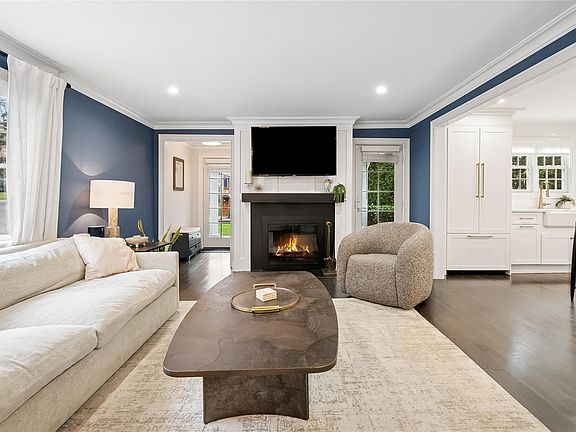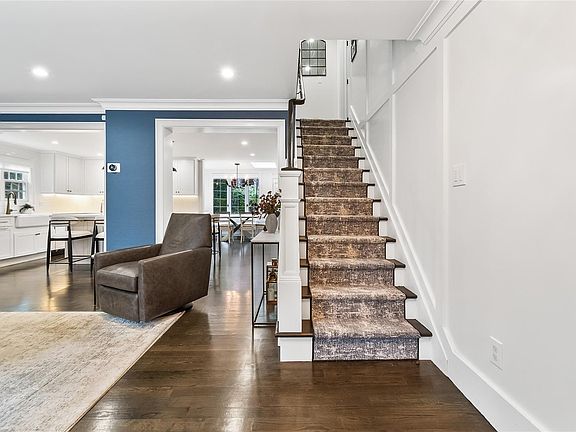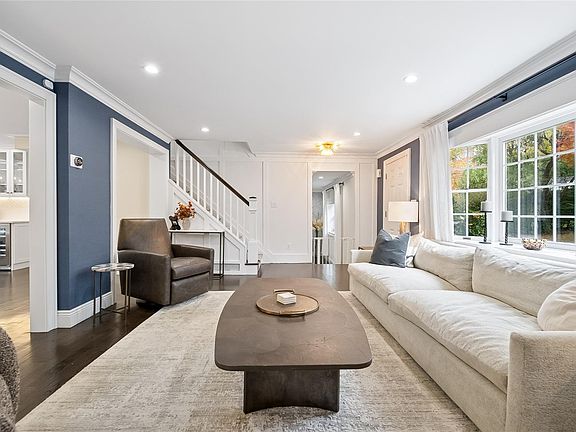 Experience a home where classic Munsey Park charm meets modern refinement. Completely renovated and thoughtfully expanded, this residence offers a blend of sophistication, comfort, and everyday ease. Nestled quietly at the end of a no-through street, the residence provides an added sense of privacy and retreat while still moments from train and town. Sunlight moves gracefully through well-proportioned rooms, leading you to an open eat-in kitchen designed with top-of-the-line materials and craftsmanship. The first-floor bedroom—equally suited as a private office—sits beside a full bath for maximum flexibility. A wood-burning fireplace grounds the main living area, and bluestone patios extend the living space outdoors in a natural, inviting way. With four bedrooms and three full baths, the home easily adapts to the rhythm of modern life. The second floor features a spacious primary suite with a generous walk-in closet and en-suite bath, complemented by a convenient second-floor laundry. A home with this balance of modern design, comfort, and exceptional location is a genuine find in Munsey Park—one that invites you to settle in and stay for years to come.