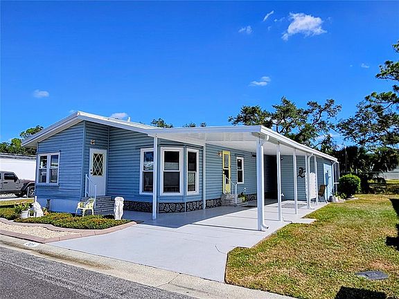 Welcome to Sarasota's hidden gem! Oakwood Manor is a gated, 55+ vibrant and active community with a resort lifestyle - NO lot rent and a low maintenance fee! This Skyline Manufactured home has loads of updates and is situated on a private back lot on the East side of the 90 acre community. The home features 2 bedrooms, 2 baths, a large living space, remodeled kitchen, formal dining space with a contemporary vibe, private den/office off the primary bedroom that features sliders to the oversized screened lanai - a fantastic addition for outdoor living and entertaining. Upon entry, the main living spaces and bedroom floors have been updated with eye catching luxury vinyl plank flooring. The remodeled kitchen has beautiful Wellborn Aspire Bel-Air embossed melamine soft close cabinets, a large entertaining bar, a pantry, loads of counter and cabinet space. Enjoy a cup of morning tea in the breakfast nook. The washer and dryer are housed in the storage room along with a utility sink for outdoor convenience. Not all items pictured convey with sale. Updates include: Elastomeric Roof Over 2018 with warranty / HVAC 9/2025 with warranty / Re-piped plumbing 2022 / Double Pane Windows 2006 and corrugated hurricane shutters / Kitchen remodeled 2021 / Luxury Vinyl plank flooring through most of home 2019 / Water Heater 2022 added overflow alarm / 2016 replaced shower guest bath / Exterior painted 2015 / partial Carport replacement 2025 / Carport floor and steps epoxy coated 2021. Located in the ONLY Resident Owned Park in the City limits of Sarasota!! The vast amenities start with the spacious Clubhouse outfitted with a full commercial cook kitchen, event stage, audio/visual, dance floor, state of the art fitness room, activities hall, library with books/movies/puzzles and a pool table. Outside recreation includes an extra large heated pool with a handicap ramp, a spacious kidney shaped hot tub, ample umbrella tables and lounge chairs and updated shower rooms. Oak trees shade the beautiful park area, picnic tables and a community grill. Additional amenities to enjoy are the community putt putt course, bocce ball, ping pong and corn hole, numerous social events and activities. Conveniently located adjacent to Legacy Trail and 12 newer pickle ball courts. Just a short drive to our crystal sand beaches, downtown area, the marina, fishing pier, local golf courses, shopping, variety of restaurants, the museum, SRQ airport, SMH and Doctors hospitals. Please note that Oakwood is a 55+, no pet, no motorcycle Park.