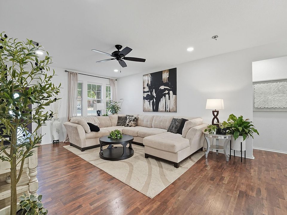 Nestled in the highly sought-after Vista Ridge neighborhood, this beautifully maintained single-story home offers the perfect blend of comfort and style. Featuring 3 bedrooms and 2 baths, this home is ideal for those seeking tranquility and modern living. Step into a spacious living room that opens to a large kitchen, perfect for both everyday living and entertaining. The chef-inspired kitchen is equipped with ample counter space, updated tile backsplash and an eat-in kitchen. Enjoy the added convenience of a refrigerator and washer/dryer that will convey with the property, if so desired. The primary bedroom is generously sized, offering a peaceful retreat, with an attached en-suite and double closets. Outside, you'll be captivated by the expansive covered patio, which overlooks a private, beautifully landscaped backyard—ideal for relaxation or outdoor gatherings. The home boasts beautiful wood flooring throughout and features thoughtful updates, including a new roof installed in 2022. The Vista Ridge community offers a quiet and friendly atmosphere, with access to a large community pool and playground, making it the perfect place to call home. Conveniently located near top-rated Leander ISD schools, shopping, and dining, this home truly has it all. Schedule a visit today! (FYI, this home is also listed for rent for $1975) Please reach out to the listing agent with any questions, or to set up a showing! Stacy Lambert: 770-828-6170