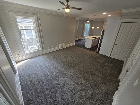 New fixturesEnclosed porch areaHigh ceilingsOff street parkingNew carpetLots of storageCeiling fans