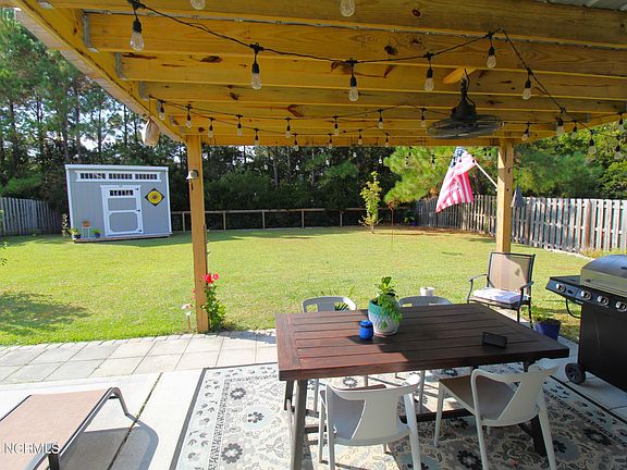 Welcome to 305 Primrose Place, Newport, NC! This comfortable 3-bedroom, 2-bathroom home in the desirable Gracelyn Park subdivision offers both comfort and style. The open concept living area with vaulted ceilings greets you with a generous foyer and abundant natural light. The dining room has a wall of built-ins and a beverage fridge to make entertaining a breeze. The galley style kitchen is equipped with a newer dishwasher and refrigerator, with bar seating as well as a sunny eat-in area. All three bedrooms are on the main level. The main bedroom and ensuite are spacious and stylish. The guest bedrooms are on the opposite side of the home, and are spacious, light and bright and share the hall bath. An oversized bonus room (currently used as a bedroom) has a closet, and is perfect for an office, workout space or playroom. The property's backyard features a covered pergola with party lights and fan, and patio area. The studio style shed helps keep yard tools organized. Completely fenced, the backyard is great for entertaining, fur babies and gardening. Many recent updates including HVAC, interior paint, lighting, cabinet hardware etc. (see complete list in documents). This home has a prime location and is close to schools, parks, and nearby shopping centers, and has easy access to Hwy 70. Approximately 15 minutes to Atlantic Beach and less than 20 minutes to Cherry Point. Schedule your private showing today!