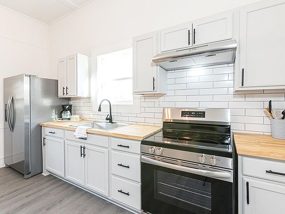 Charming & Fully Remodeled 3-Bedroom Home on a Corner Lot! This adorable home has been beautifully remodeled from top to bottom! Some of the brand new include roof, gutters, windows, flooring, paint, kitchen, bath, updated electrical and plumbing, doors, hot water heater and more. The brand new kitchen features a stylish center island, butcher block countertops, new cabinets, tile backsplash, and stainless steel appliances—including a refrigerator! The open floor plan boasts tall ceilings in the family room and a new electric and functional fireplace creating a warm and inviting space. The remodeled bathroom includes tile floors, tiled tub/shower surround, new vanity, and a spacious walk-in linen and clothes closet. All bedrooms are generously sized with tall ceilings. The primary suite offers a walk-in closet and a convenient stackable washer/dryer included. Step outside to enjoy the new back deck or covered front porch with fresh landscaping ideal for relaxing or entertaining. Plus there is a fully fenced yard and cross fenced with multiple gates perfect for pets and children. Situated on a corner lot, this property is just minutes from city amenities offering both convenience and comfort. Don’t miss out on this beautifully updated and move-in ready home—schedule your showing today!