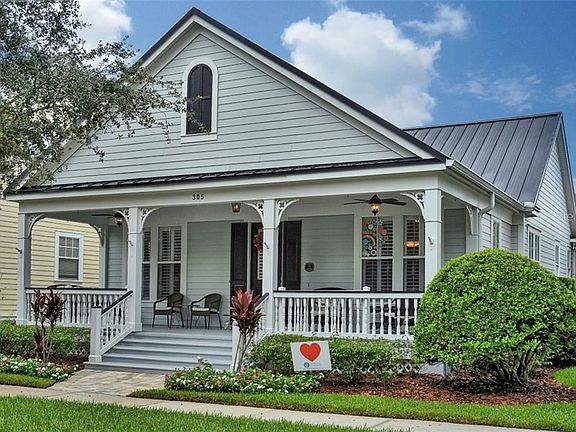 Single Story "Renee" Victorian 3 Bedroom, 2 Bath Home. Large covered front porch spans the entire width of the home. Entrance Foyer leads to Living Room on your right that could also be a Formal Dining Room. On the Left Wood Glass Panel French Doors lead to the Home Office with Wood molding and trim. Gallery Hallway has Custom Tile Wainscoting. Custom Tile with Decorative Listellos , Crown Molding and Plantation Shutters throughout main living areas. Kitchen features: Custom Cabinets with Glass Doors, Granite Counter Tops including Breakfast Bar, Tile Backsplash plus Eat-in Space. Family Room has custom plank ceiling, Built-in Shelving and Designer Fan. Inside Laundry Room. Owner's Suite with Master Bath featuring Garden Tub, Dual vanities and Large Walk-in Closet. Two additional Guest Bedrooms and Guest Bathroom. Large Back Patio and Covered Walkway to the 2 Car Garage plus additional Stone Paver Patio with Custom Fig & Vine Landscaping and retractable Pergola Canopy. 5 High End FRONTGATE Tiki Torches surround the Patio so you can enjoy evenings at the firepit. NEW 2020 Rain bird irrigation system installed. 2016 Metal Roof installed plus Custom Harrier Hawk Copper, Gold & Palladium Trim Weather Vane. 2017 Lightning Rod Protection System installed. Seamless Gutters with Leaf Filter Gutter Covers installed in 2018. Lennox 4 ton 17 Seer Air Conditioning System. Insulated 2 Car Garage has New 2020 Lift Master Auto Garage Door Opener. Enjoy over 26 miles of walking/biking trails throughout the community.