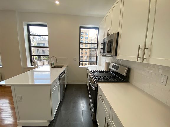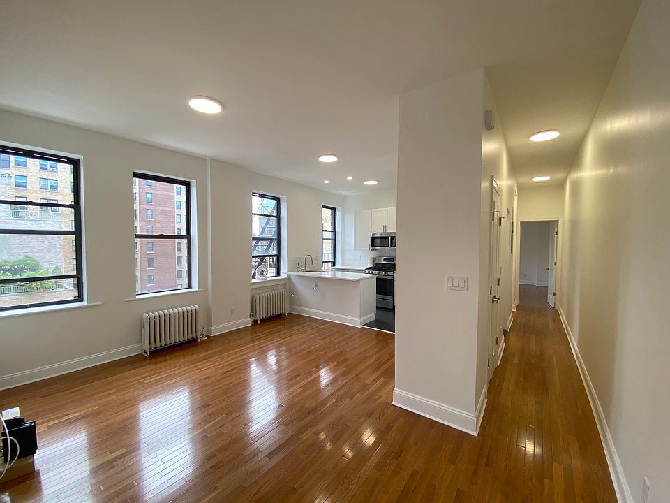 This sprawling sun-splashed two bedroom apartment faces east and is ideally located in Manhattan's most coveted neighborhoods. Tastefully renovated with modern touches and classic charm. Enter into a long corridor with multiple closets, leading to a vast open layout enlivened by a bank of oversized windows that shower the space in natural light. Renovated windowed gourmet kitchen features stainless steel appliances, custom granite countertops, tiled floors, and kitchen island with overhang, perfect for dining at. Recessed lighting in the living and dining area. The primary east facing bedroom includes ample closet space and is large enough for a king sized bed with additional room to spare. Secondary windowed bedroom with closet space. Both bedrooms are situated at opposite ends of the apartment allowing for optimum privacy. Tiled windowed bathroom with modern finishes. High ceilings and hardwood floors throughout the apartment.