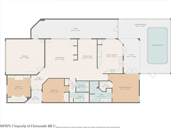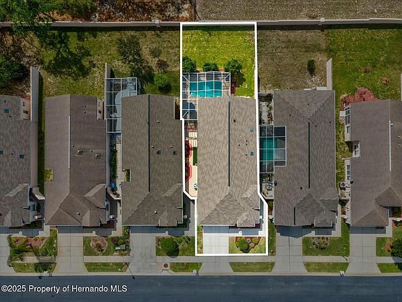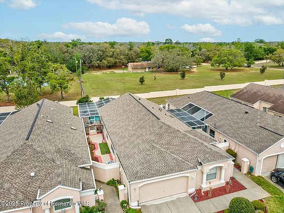 Welcome to this beautifully maintained 3-bedroom, 2-bathroom home with a 2-car garage and private screened-in pool, nestled within the desirable gated HOA community of The Palms at Seven Hills. From the moment you step inside, you'll be greeted by elevated ceilings, abundant natural light, and an inviting open layout designed for comfortable living and entertaining. The spacious primary suite is a serene retreat, featuring a large walk-in closet with a custom organizer, and an ensuite bathroom complete with dual sinks and a walk-in shower. The two additional bedrooms are generously sized and offer ample closet space, with many windows adorned with elegant plantation shutters. At the rear of the home is the large, open kitchen that overlooks the pool and wraps around to the side courtyard. Enjoy granite countertops, plentiful cabinet storage, a closet pantry, eat-in dining space, a water filtration system under the sink, and newer stainless steel appliances (2020). Whether you're hosting guests or enjoying a quiet meal at home, this kitchen has it all. A separate dining area and spacious living room with built-in shelving provide distinct spaces. The home also includes a functional laundry room with cabinets and a utility sink, and a bright hallway bathroom with a tub/shower combo, linen closet, and skylight. Step outside to your private oasis: a screened-in swimming pool with a private courtyard, perfect for relaxing or entertaining year-round. Additional updates and features include: Roof (2023) HVAC (2019) Pool Pump (2021) Pool Filter (2025) Water Heater (2021) Luxury Vinyl Plank Flooring (2025) Located just minutes from the YMCA, schools, local hospitals, shopping, dining, and more, this home combines comfort, convenience, and style in one exceptional package.