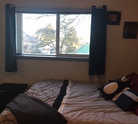 The room is decent sized - approximately 12x11 with large windows that look into the backyard and a closet with mirrored doors. You share a full-sized bathroom with double-sinks on the main level with 1 other roommate. Rent is $650 per month, which includes water, garbage, gas, electric, and lawn care; wifi is split amongst housemates and runs about $12-$15 per person. The rental agreement in month-to-month but we prefer someone who can stay for at least a year. There is a $600 security deposit, but that can be broken up over 2-4 months if needed. No pets allowed (sorry!) and we do require a background/credit/eviction/criminal check (which costs $43), and your application may be denied for one of those reasons.