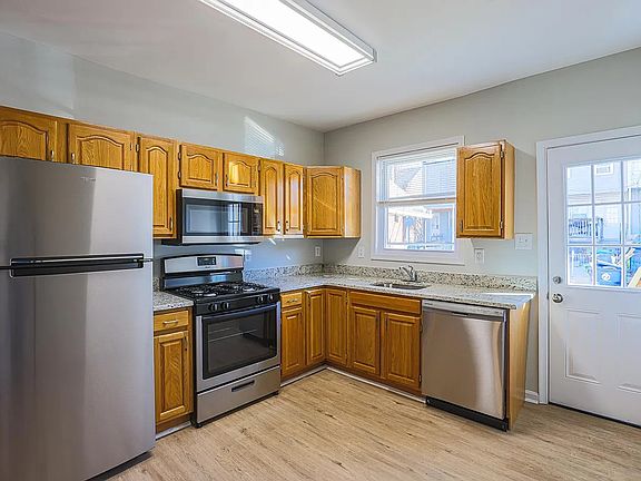 When you first walk into this beauty you'll notice the large living area with fresh hardwood floors, and high ceiling. As you continue further past the dining area, you'll find a beautifully updated kitchen with brand new appliances such as a refrigerator, oven, stove, sink, and dishwasher!