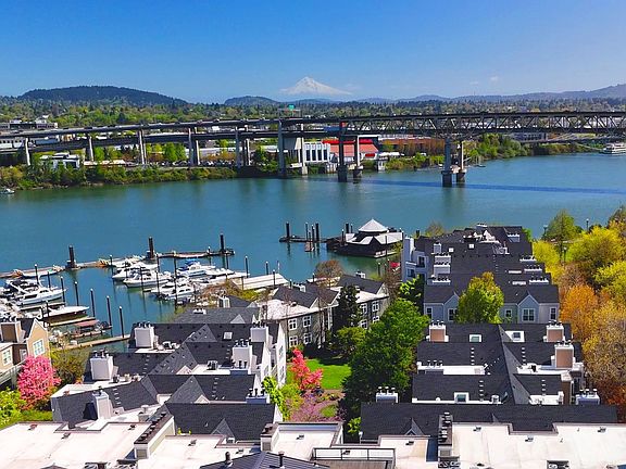 **The Christmas Ship Parade is coming - Capture your FRONT ROW SEAT to the best of Portland's Waterfront, where urban living meets the tranquility of the Pacific Northwest.** The unit offers the perfect balance of comfort, style, and convenience, featuring an open floor plan with a mesmerizing wall of windows and eastern views of the Willamette River and Marina. Contemporary finishes add just the right touch of elegance, while the two private covered patios invite you to entertain or relax in the serene setting. Head to the rooftop deck for panoramic views of the river and city skyline—the perfect vantage point for watching fireworks, dragon boat races, or the twinkling lights of the Christmas Ship Parade. Just steps from your door, stroll through manicured community gardens, wander the Esplanade, or enjoy the shops and dining at Water's Edge. With everything you need within reach, this move-in-ready home is ideal for those seeking a vibrant, simplified lock-and-leave lifestyle in the heart of Portland. Capture the opportunity to make RiverPlace your new home and live the "Urban Waterfront Lifestyle."Book your private tour to experience the incredible waterfront features that the pictures do not represent. Endless possibilities: ** Note that the “Virtually Staged” pictures represent a similar unit, featuring a bedroom where the built-ins are along the wall and a closet where there is a built-in desk. The half bath has a generous area that would be perfect for a shower, as done in a similar unit. Seller updates: Numerous updates since purchase, new HVAC, water heater, paint, carpet, primary bathroom remodel.