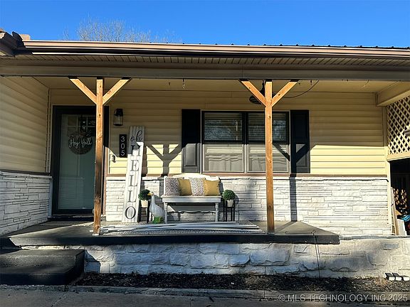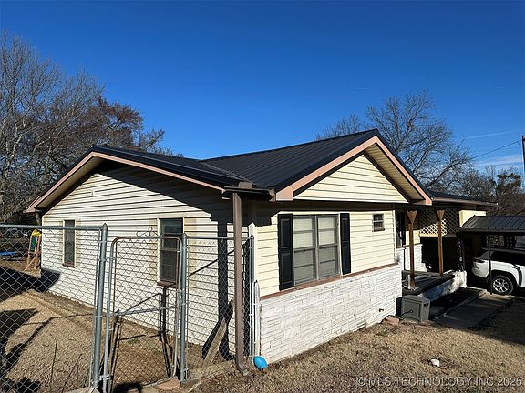 Outdoor amenities include a fenced backyard, a large deck perfect for entertaining, an outdoor storage building with electricity, and a brand-new metal roof. The property also features a paved driveway and a carport for additional storage and parking. This home presents an excellent opportunity for first-time homebuyers. Wilburton provides a peaceful, small-town atmosphere, while offering convenient access to local amenities. This home is move-in ready and qualifies for various financing options. Call today for your private showing on this desirable new listing!