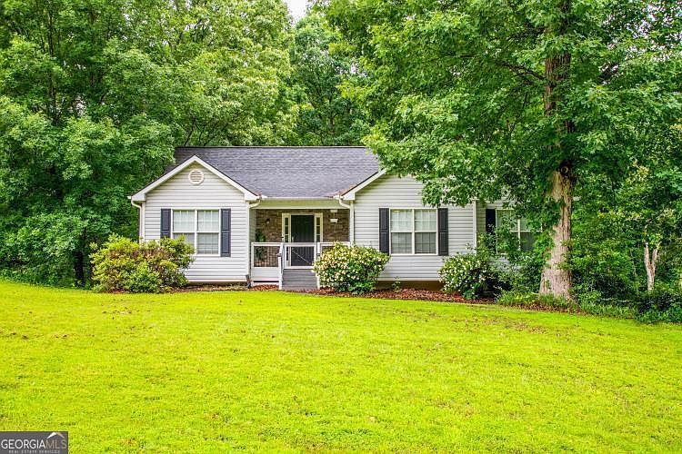 Charming ranch-style home featuring a finished room in the basement! Covered front porch, deck & fenced backyard! Spacious primary bedroom features a tray ceiling, double vanities, separate soaking tub and walk-in closet. 2 spacious secondary bedrooms. LVP flooring throughout! Spacious kitchen features a sunlit breakfast room with door leading to the deck overlooking the wooded fenced yard. Separate dining room. Oversized vaulted family room features a fireplace with stone surround. .57 wooded acre lot! Great Canton location near all shopping, Restaurants, Schools & Hwy 575! New Cherokee High school in 2026! Award winning J. Knox Elementary school just minutes away! Fabulous Amenities: 2 pools, clubhouse, playground & tennis courts!