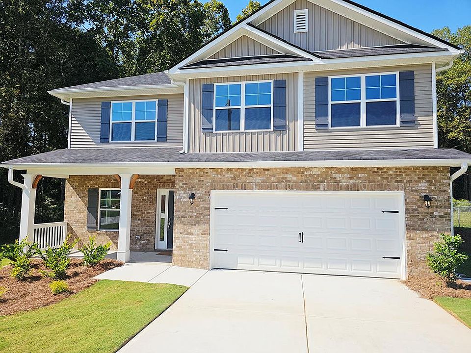 Welcome to "The Oakridge Haven" - A Spacious 4BD/2.5BA 2307 sq ft Retreat in Scarlett Place! cul-de-sac retreat! This two-story home features an open-concept living area, granite countertops with tile backsplash, main-level master suite with separate tub & shower, and a versatile upstairs rec room. Standard features include full sod front & back, 30-year shingles, brick-front exterior, 51/4 baseboards (even in the garage), tray ceiling in master, garbage disposal, and more. Covered patio perfect for relaxing outdoors. No HOA, USDA eligible, only $1,000 earnest money! **Price Reflects Builder Incentive**